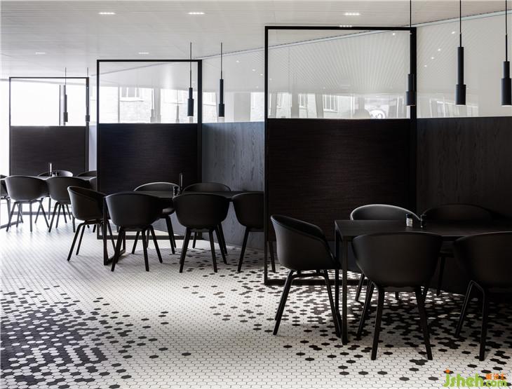 布局總共是850平方米的開放區(qū)域,有各式各樣的座位,從私密舒適,到更加開放明亮的用餐區(qū)。這為顧客提供了一個選擇,任他們想要的方式來坐,吃,喝或工作。不同的座位區(qū)域和氛圍是在不同的材料和顏色的對比下創(chuàng)建的,從簡樸到奢華。