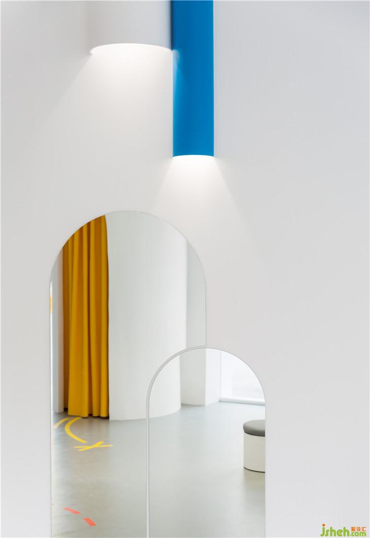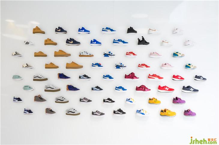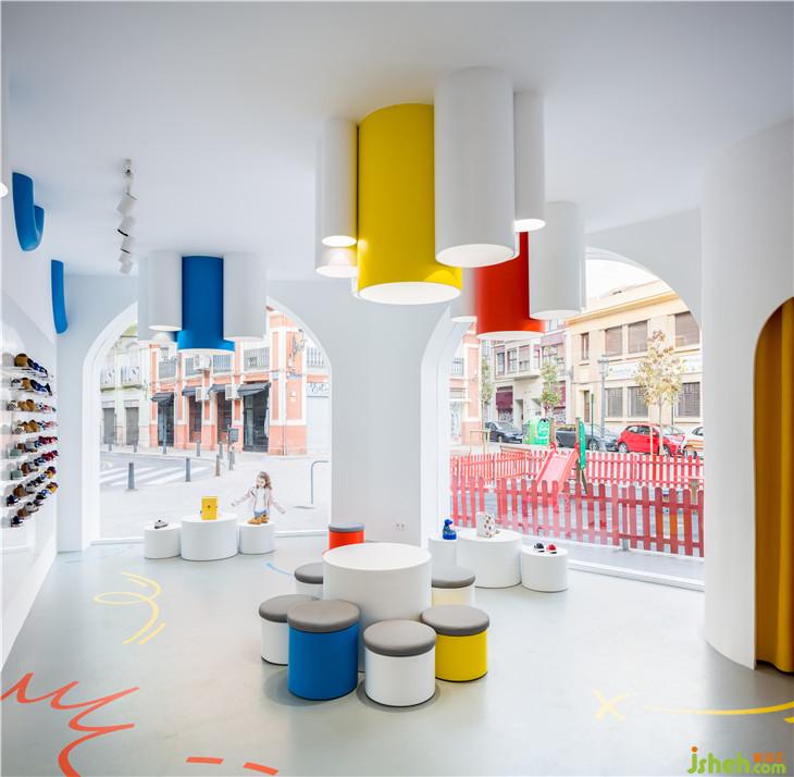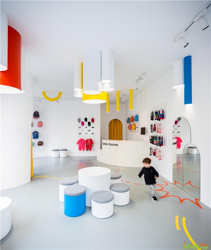 “小故事”概念鞋店不論從外觀還是室內(nèi)上都有著強(qiáng)烈的吸引力,不僅為孩子們提供了連續(xù)的游戲空間,還使商品得到了充分的展示。室內(nèi)的燈光從天花板上的管道內(nèi)散發(fā)出來,將人們的目光不斷吸引到產(chǎn)品上來。