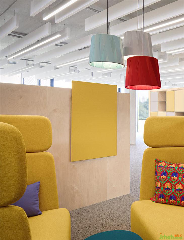 雖然所有員工的工作空間都是開放的,但他們?cè)谝鹿穸紦碛歇?dú)立的儲(chǔ)物箱可以放置個(gè)人物品。AEB的員工也可以根據(jù)個(gè)人喜好選擇不同工作區(qū)域:可調(diào)高度的工作臺(tái)、站立式工作臺(tái)以及可放置多臺(tái)電腦的常規(guī)辦公臺(tái)面。大型辦公室中的壁龕提供更私密的角落,幫助營(yíng)造一個(gè)舒適的氛圍。斜對(duì)角的A和B辦公室被分配了黃色和藍(lán)色的主色調(diào),以便員工更快、更準(zhǔn)確地找到方向。