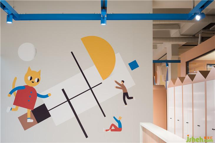其開放式布局,顧名思義就是要求設(shè)計(jì)后的建筑可以使多個(gè)部門之間可以較頻繁的互動(dòng),并有益于未來的團(tuán)隊(duì)擴(kuò)展。設(shè)計(jì)以夸張手法和趣味性來使大家在工作過程可以有在童年時(shí)代般的氛圍輕松愉悅。開放性和趣味性是該公司所代表的核心價(jià)值觀,這些都被作為設(shè)計(jì)解決方案的起點(diǎn)。