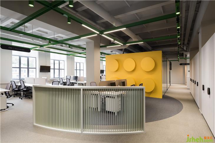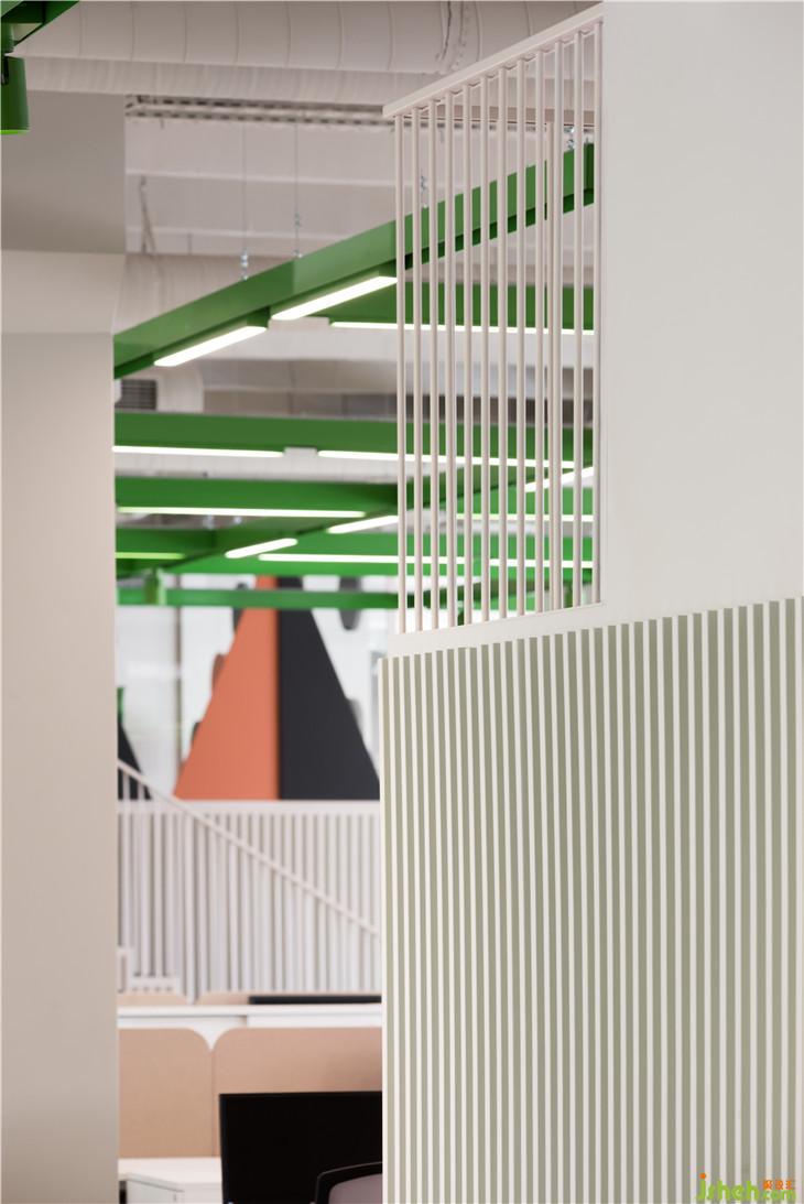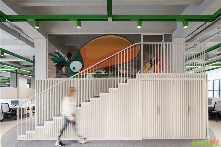 一旦“游戲”開始,人們就進入了開放式工作區(qū),在這里員工工位都臨窗而設,擁有明亮充足的采光和開闊的視野,而較暗的中心區(qū)域則規(guī)劃為室內的交通動線。而在工作區(qū)不時出現的夸張游戲元素,不僅給空間帶來活力氛圍,而且可以起到一個很好的提醒告訴人們工作的作用。