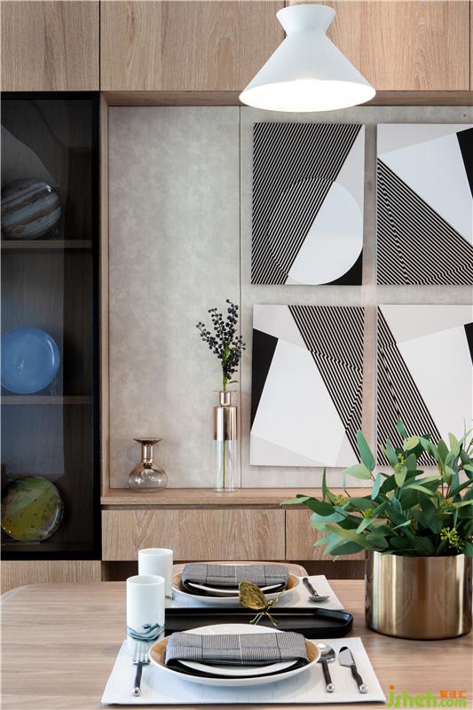 在蒙特利安的眼里,“樹是直的,海是橫的。直角是一切平衡的基石?!痹诳臻g界面構(gòu)成中,我們通過線條的塑造尋找著一種使空間“向上生長”的張力。在純凈的界面中嚴(yán)格尋求比例的平衡與美感,衍生出簡潔雅致、知性又獨(dú)具品味的空間氛圍。同樣,在空間細(xì)部中,仍然嚴(yán)格控制比例模數(shù)統(tǒng)一,確保簡約而不簡單的空間品質(zhì)。