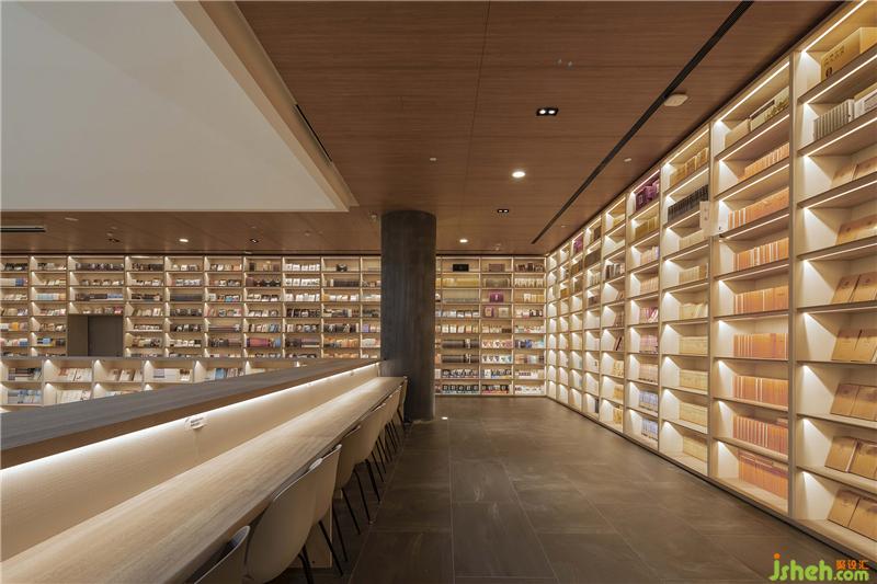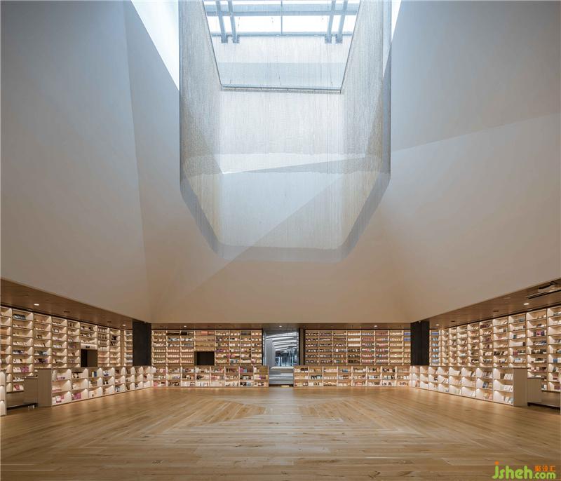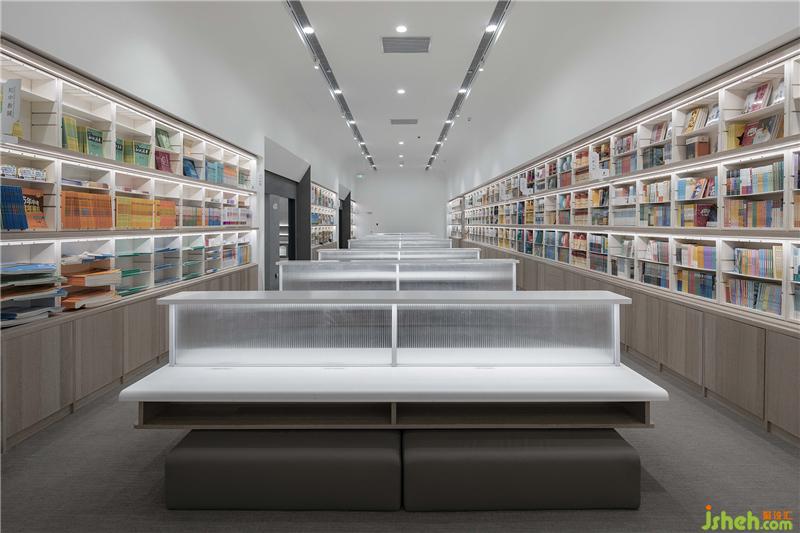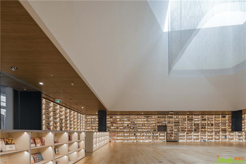 透明天窗是本區(qū)域的設(shè)計亮點,利用自然天光渲染靜謐的環(huán)境色調(diào),將阿房宮賦中的華美殿堂淬煉為當(dāng)代的極簡線條,勾勒出讀者們沉心讀書的理想之地。書城設(shè)計