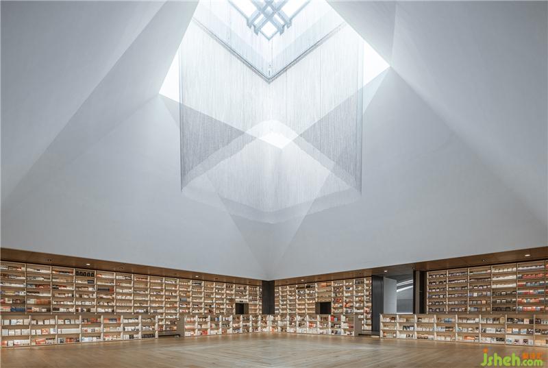 書城中庭為文學(xué)閱讀區(qū),通過強化中軸線以凸顯儀式感,交通流線亦圍繞中庭布置。留白簡凈的肌理讓空間功能回歸閱讀本身。