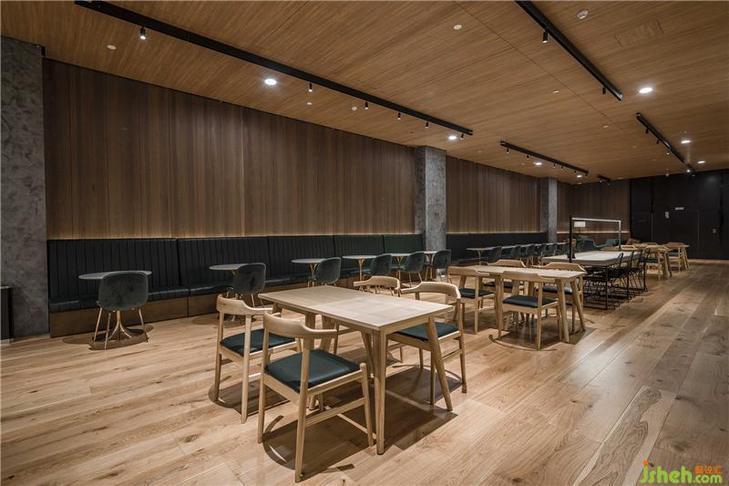 基于復(fù)合經(jīng)營的商業(yè)考量,圖書業(yè)態(tài)與其他消費(fèi)業(yè)態(tài)有機(jī)結(jié)合。低調(diào)置入的咖啡區(qū)提供了更休閑式的社交空間,墨綠點(diǎn)綴穿插在木色空間中,也成為跳動的個性隱喻。