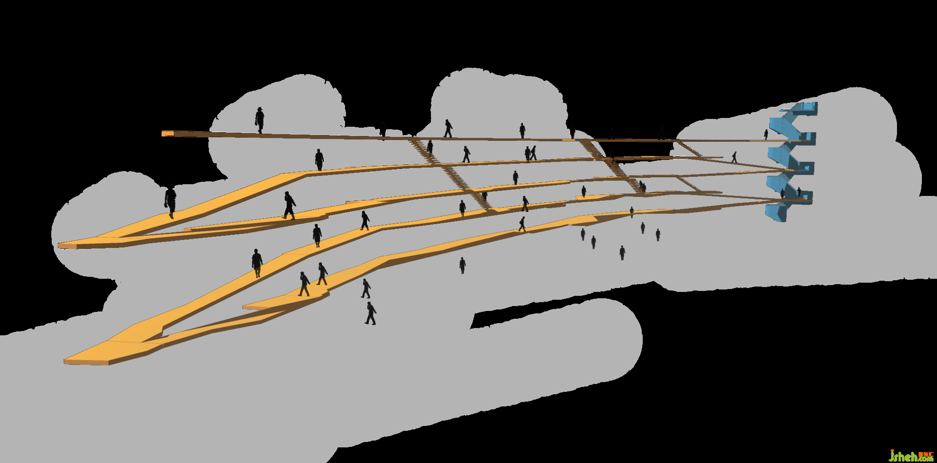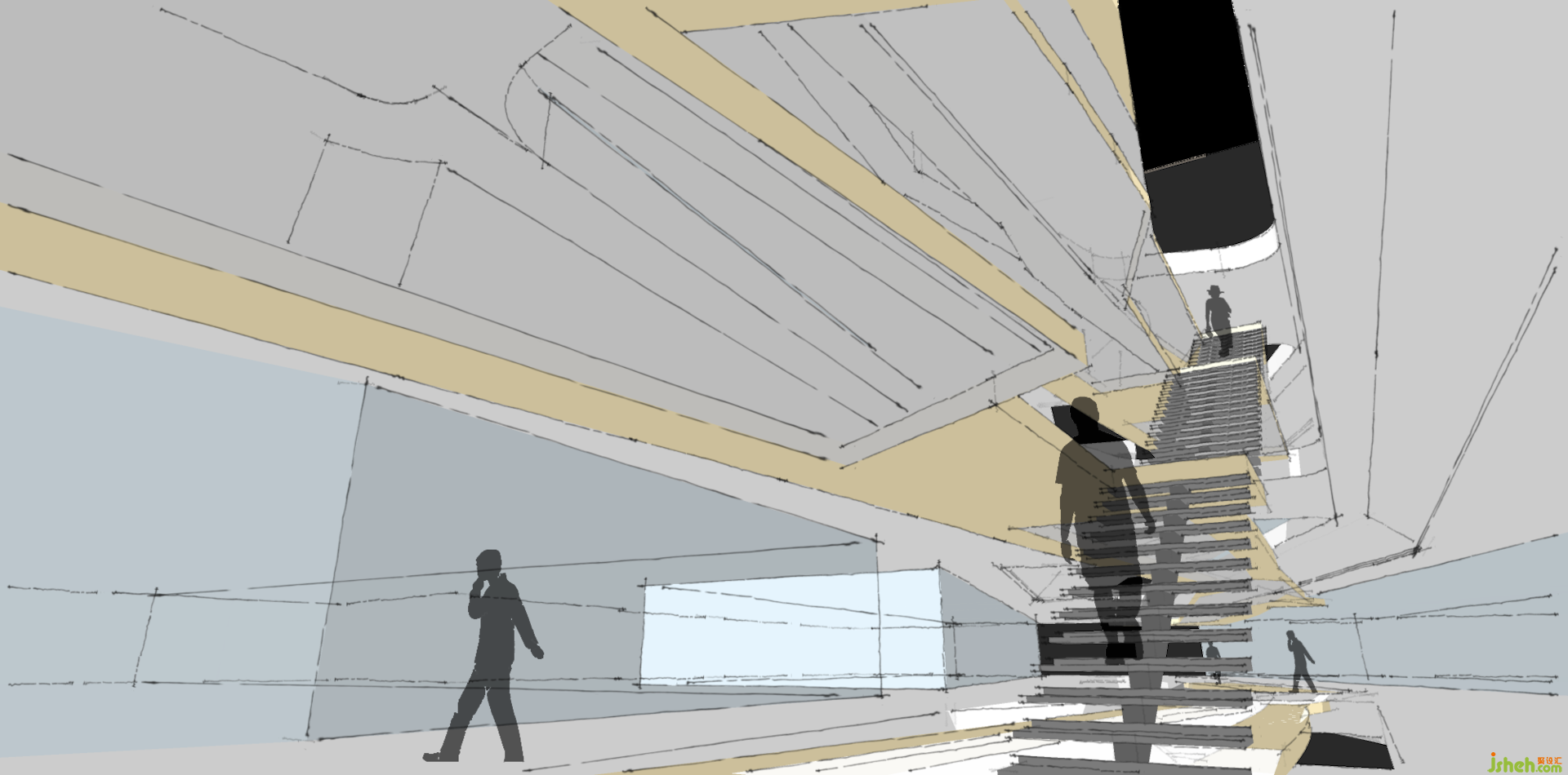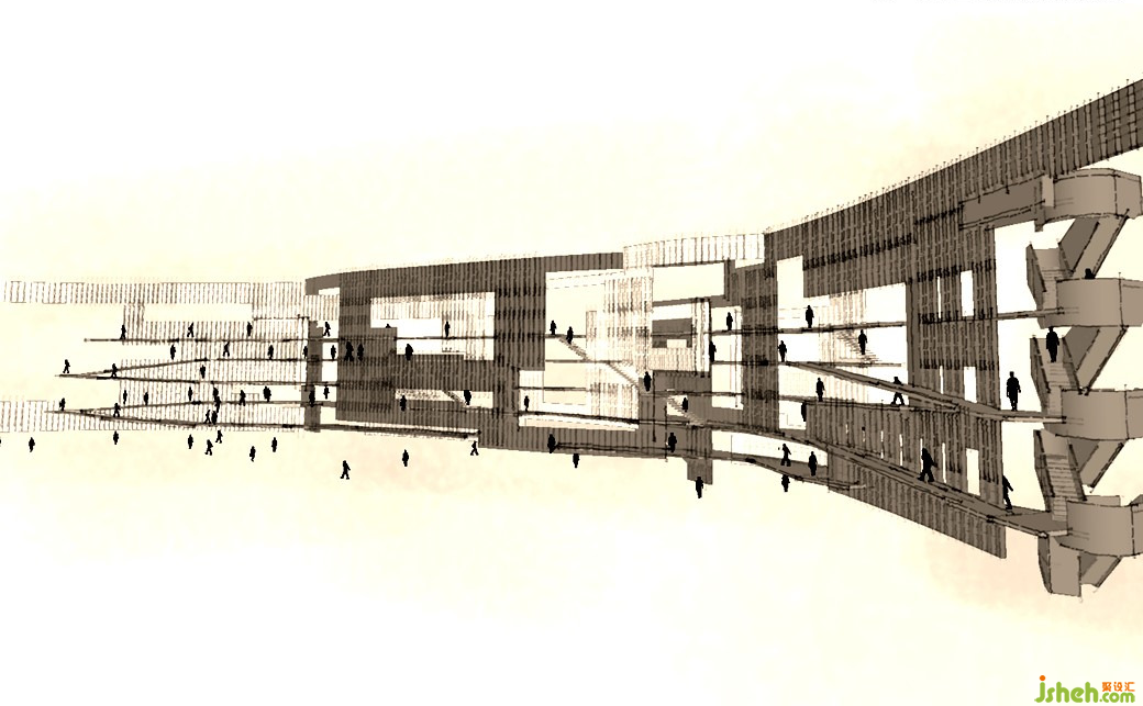 承載數(shù)十萬(wàn)冊(cè)圖書的書墻,以鋼結(jié)構(gòu)和透明玻璃為材質(zhì),除了視覺穿越,也讓光線自由漫射在挑空區(qū)域,與空間實(shí)體交迭出各種形式的語(yǔ)匯。閱讀者穿梭在書墻與挑空之間,成為這殿堂景象的一部分。