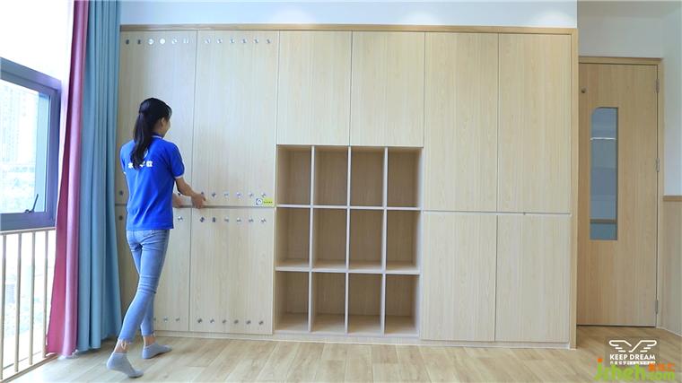 被子收納體系,托育中心設(shè)計各個床墊可以攤開分層放置,有效殺菌、散汗味。