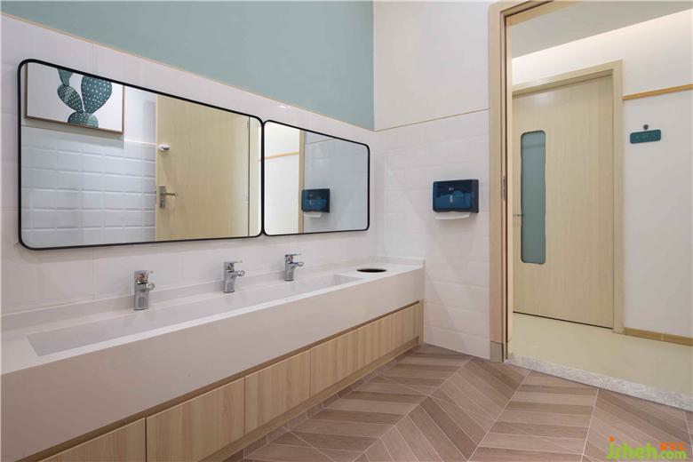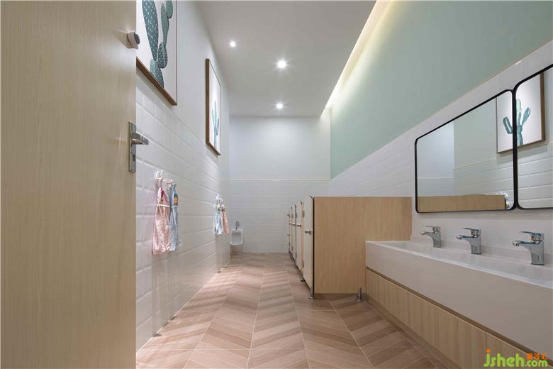 衛(wèi)生間將盥洗區(qū)與便間分離,獨(dú)立的小隔間,保護(hù)著孩子們的隱私。洗手池下方做收納柜體既能很好地隱藏水路管道,也能作為儲(chǔ)物空間,一舉兩得!