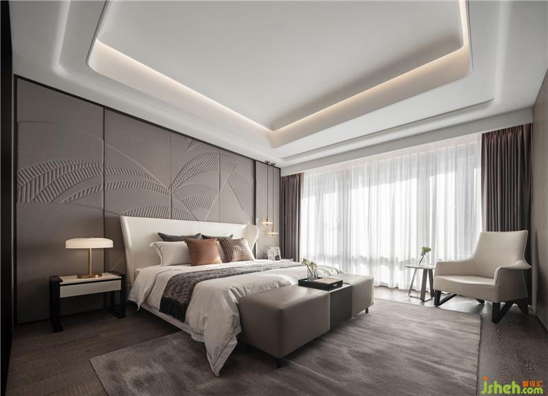 整個項目除了將山、水元素作為靈感,還將游艇內(nèi)飾的線條注入三間臥房,主臥更是以皮雕工藝將海浪的形態(tài)抽象化展現(xiàn)于背景墻之上,深邃的質(zhì)感與雅致灰色形成極強的張力,青島樣板房設(shè)計讓居住氛圍充滿低調(diào)奢華的氣質(zhì)。三間臥房中有兩間為套房的形式,將空間利用率發(fā)揮到極致。