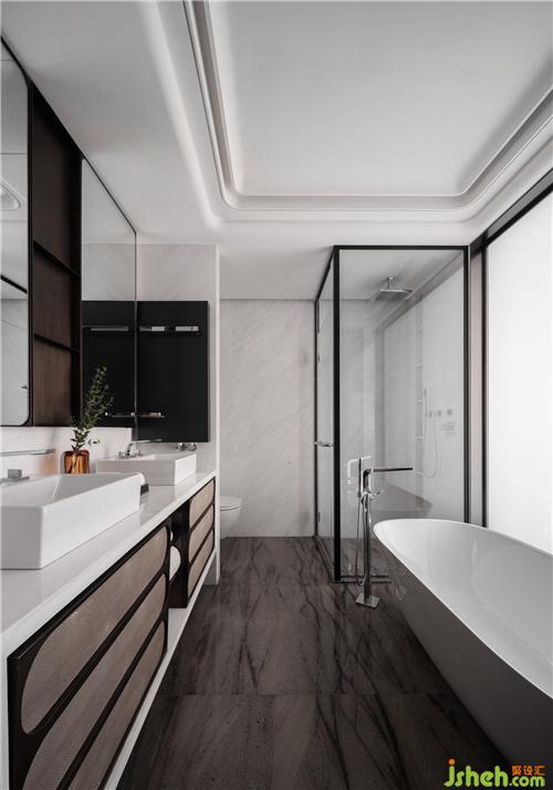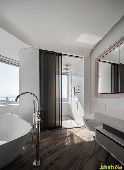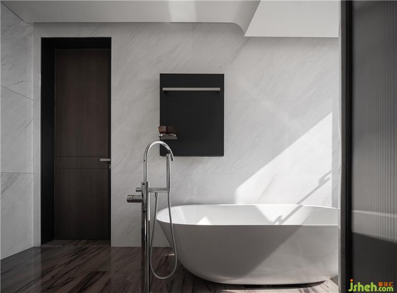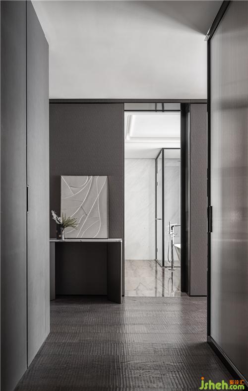玄關(guān)處設(shè)計了集浴室與化妝間為一體的空間,面向整個公共區(qū)開放,為家人與朋友提供便捷。同時為了兌現(xiàn)精致生活的每處細節(jié),設(shè)計中采用了瑞族、勞斯、西曼帝克等家裝品牌,讓空間儼然成為一件經(jīng)得起時間考驗的“可居住藝術(shù)品”,在城市中為居住者的心靈創(chuàng)造一個休憩之所。