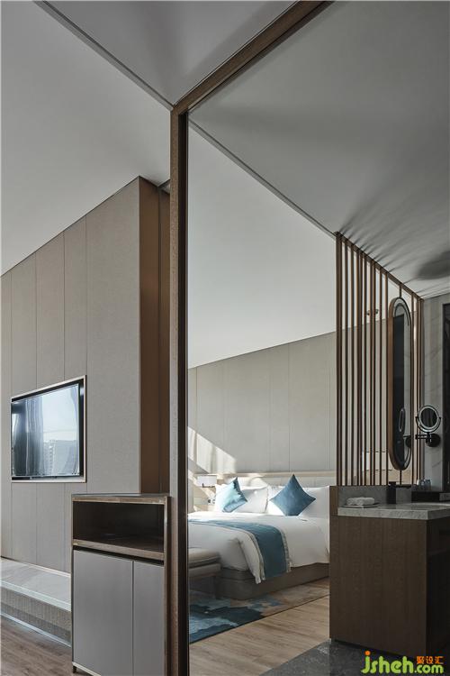 The interior design continues the artistic conception of paradise. The plane design of the hotel is winding and moving. In the narrow and quiet entrance, we are waiting for the hotel gate to be opened slowly. At the same time, we are waiting for the beginning of an elegant hotel "water" story movement. After the door is fully opened, the lobby of the hotel, which is larger and magnificent than the entrance, is shown to the guests. The rhythm of the space that descends first and then rises is perfectly embodied here. Opposite the hotel entrance is a screen, connecting the past and the future, creating a quiet and elegant lobby bar for leisure and social space in the lobby of the transportation center. It is full of changes and surprises like a Chinese garden. The interior materials used in the hotel are clearly divided and integrated, and the materials used are suitable for heating and cooling, and are harmonious and unified. Designers maintain a unique style, a distinctive water theme, and an elegant and peaceful atmosphere, and strive to create a paradise in each guest's heart. It is feasible, promising, habitable, and accessible.