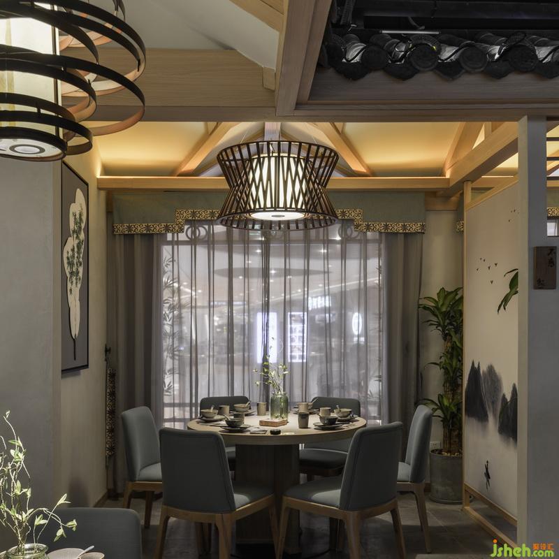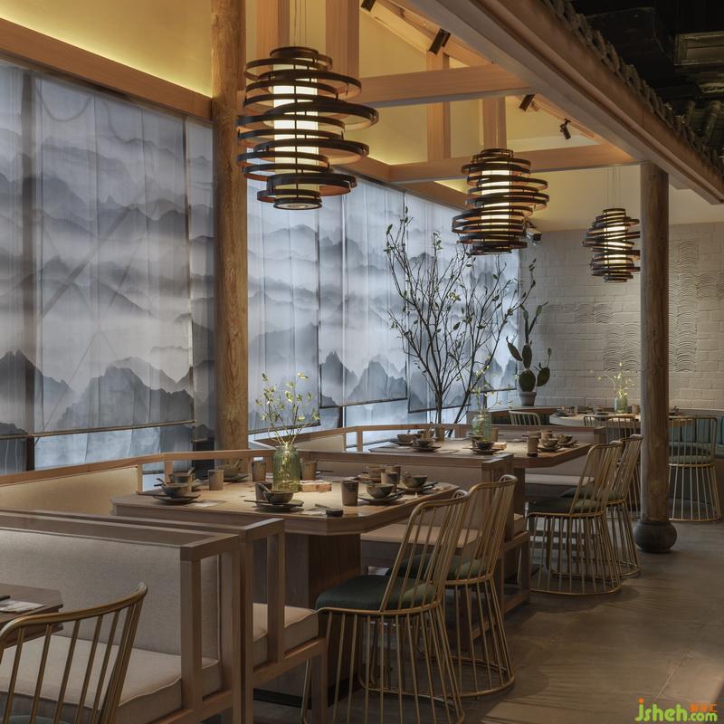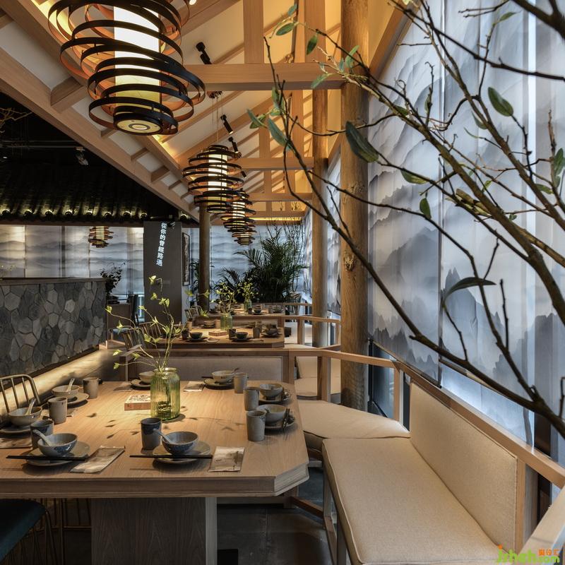 材料也基本選用中國傳統(tǒng)的木、石、小青瓦, 顏色則采用灰、白、木制本色,點綴了一抹青色。最初構(gòu)想整體用餐環(huán)境時,我們想讓顧客很遠(yuǎn)就看到看到小橋、流水、綠樹幽幽的門頭,走近一看,透過我們室內(nèi)設(shè)計師設(shè)定的半開敞視線,若隱若現(xiàn)看到內(nèi)部錯落的大小院子、老樹、白云等兒時熟悉的中國院子生活場景,這不僅僅是一場食憶之旅,更是一場身臨其境的感知。