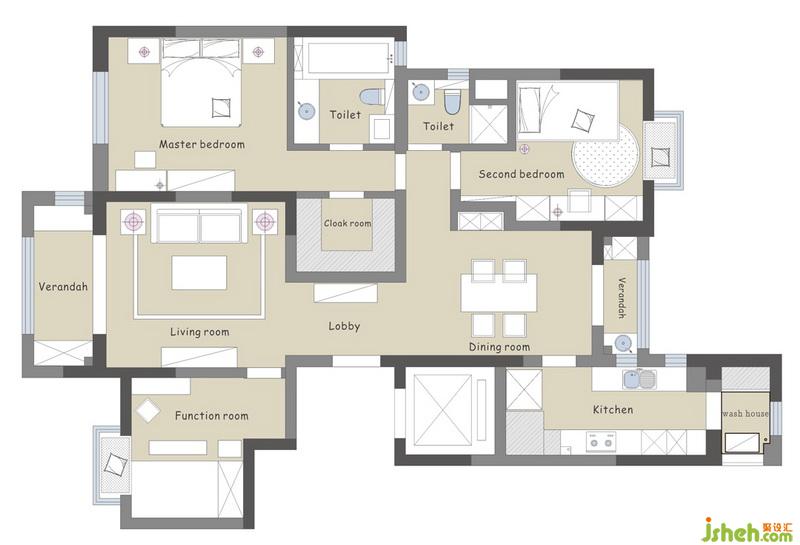 此戶型方正,入戶即有玄關;南北通透,三開間朝南,南北雙陽臺,通風效果佳;動靜分區(qū),室內(nèi)設計師利于屋主的會客與休息;主臥為套房設計,帶有獨立的衣帽間和衛(wèi)生間,私密性好;多景觀飄窗設計,有利于休閑和觀景。