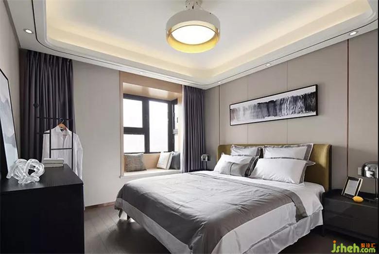 臥室延續(xù)黑白灰的簡(jiǎn)約基調(diào),提供屋主相對(duì)平靜舒適的睡眠環(huán)境,另搭配橄欖綠的布藝床頭,在提升質(zhì)感的同時(shí),也能避免整體氛圍陷入無(wú)趣感。此外,飄窗也運(yùn)用了古銅金色,再放上幾個(gè)格紋抱枕,顯得優(yōu)雅低奢。
