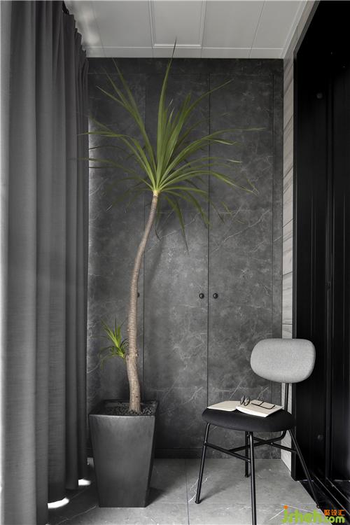 陽臺(tái)定制了寬1米4,深度35公分頂天立地的儲(chǔ)物柜,可以增加屋內(nèi)的收納空間;深灰色的柜門自帶漸變紋理,氣質(zhì)與質(zhì)感并存,又為空間帶來一股朦朧感。在這里放上一盆龍血樹,它植株挺拔、素雅、樸實(shí),帶有祝福長壽之意,放在室內(nèi)不僅可以調(diào)節(jié)空氣,還可以美化環(huán)境。