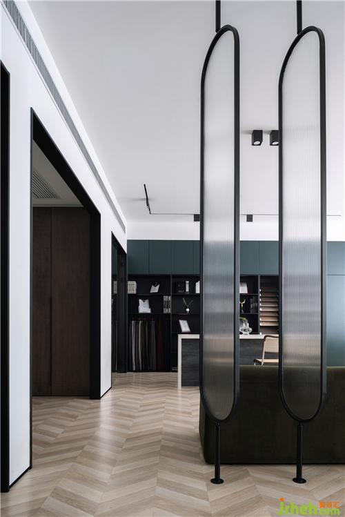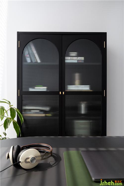 摩登復古的玻璃儲物柜,在光影下呈現(xiàn)若隱若現(xiàn)的視覺美感,集裝飾與收納于一體,給工作空間又增添了一份儀式感。
