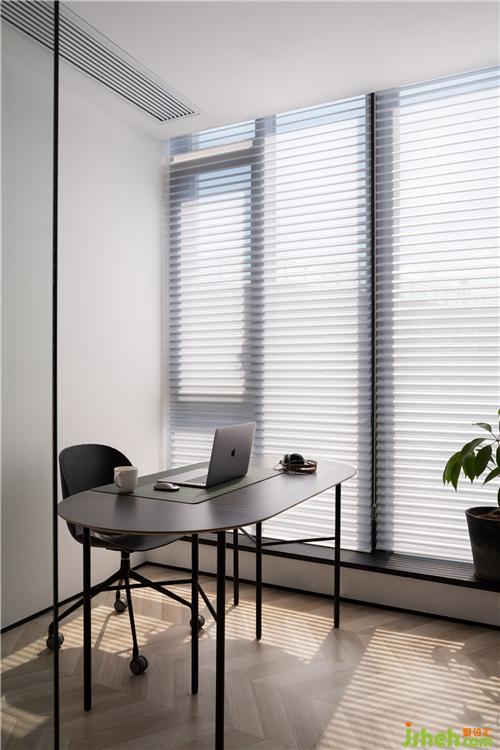 工作區(qū)的窗戶搭配了一款香格里拉簾,外形美觀,可在長時間內(nèi)保持色彩的始終如一,營造出朦朧的窗外景色,既有不錯的裝飾效果,又兼具實用性,提升了空間的現(xiàn)代感和時尚感。吊燈結(jié)合了簡約的造型與神秘黑的搭配,輕盈而不失高雅,帶來一種感官上的簡約整潔。