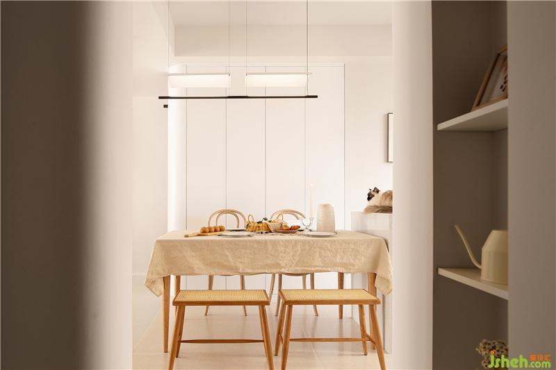 3. 餐廳與過道之間的墻體拆除,定制了儲物柜,增加餐廳空間的收納