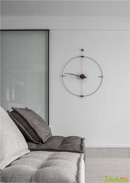 留白的墻面安裝上一個極簡掛鐘,不單純只是簡單的看時間,更是一件裝飾的藝術(shù)品,優(yōu)雅有質(zhì)感,提升了空間的檔次。