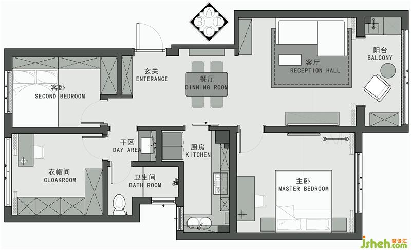 1.房間功能上需要主臥+客臥+衣帽間