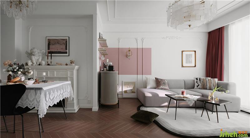 透過客廳,空間是以白色為主色調(diào),在視覺感知上,白色是比較柔和、干凈的色調(diào),南京室內(nèi)設(shè)計師搭配上粉色的撞色,帶來別具一格的溫柔與優(yōu)雅,使空間調(diào)性在和諧統(tǒng)一的基礎(chǔ)上更加具有層次感。