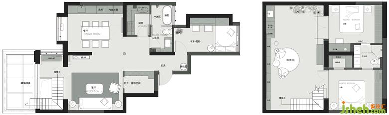 3、一層以公共區(qū)的功能布局為主,負(fù)一層為休息的私密區(qū)