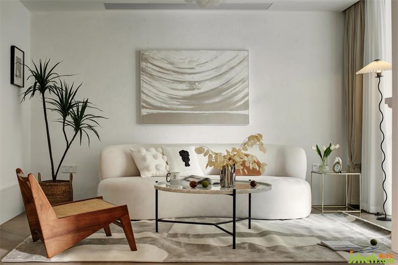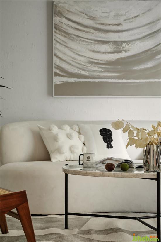 客廳居中布置了一款奶白色的三人沙發(fā),長度2.3米,圓潤的外觀,弧形的曲線,顏值與舒適兼具,靜享慵懶愜意的生活體驗(yàn)。