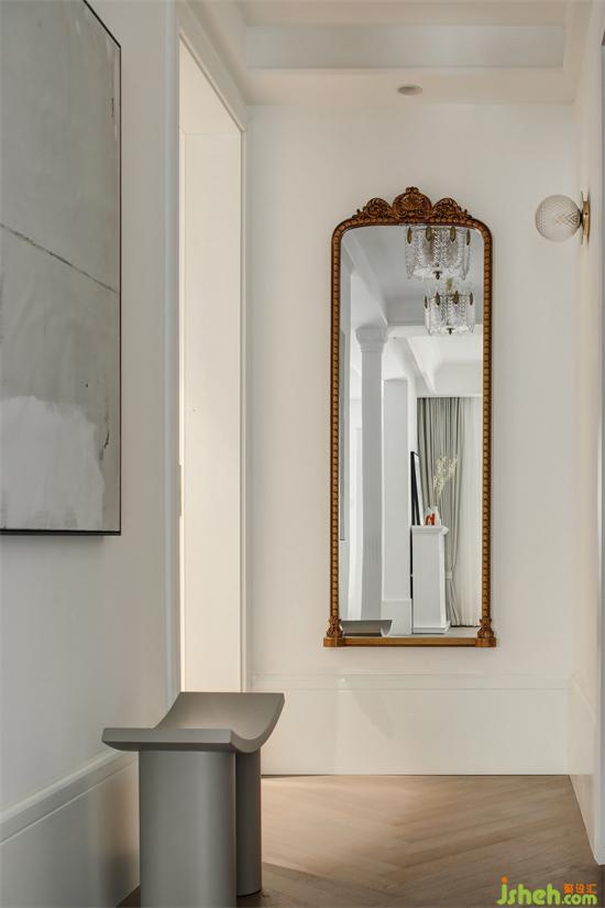 玄關(guān)墻面掛上一幅1.6米高的穿衣鏡,復(fù)古雕花的邊框設(shè)計(jì),為空間注入別樣的藝術(shù)美感;南京裝修設(shè)計(jì)打開玻璃壁燈的那一刻,精致的一天,就從它的輕語中開啟。