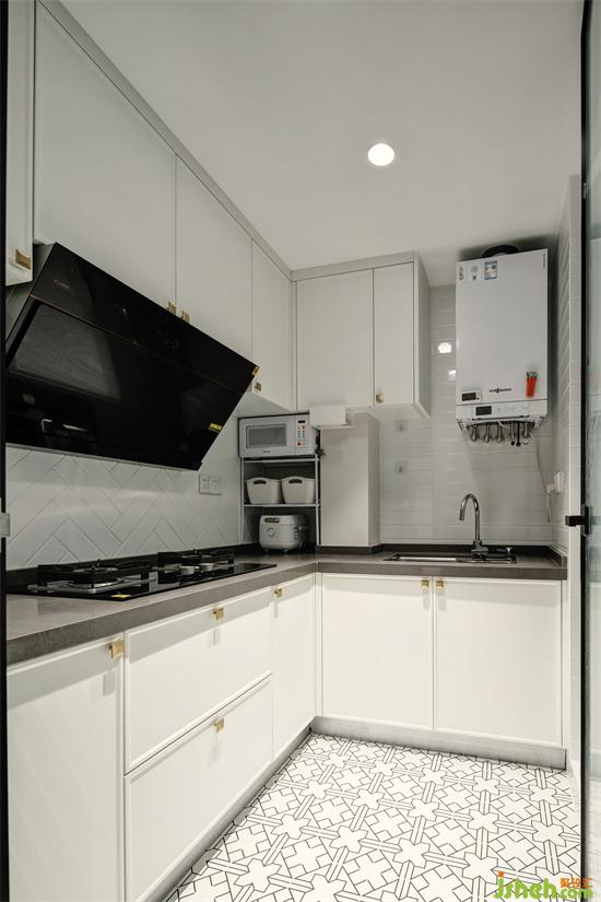 “L”型的廚房,面積雖不大,但整潔有序。潔白的空間,墻面通過小白磚“人”字鋪貼,南京裝修設(shè)計(jì)增加空間的層次感;金色的拉手做點(diǎn)綴,為空間帶來一份時(shí)尚;地面配以清新簡(jiǎn)單的小花磚,樸素又不失設(shè)計(jì)感,室內(nèi)設(shè)計(jì)師可干凈,可復(fù)古,可活潑,可溫柔。