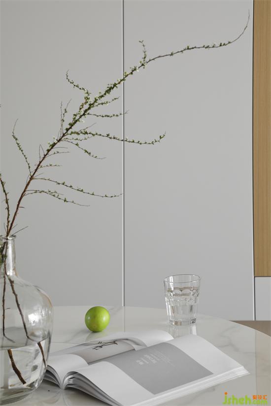 雅致的白色巖板,帶有自然的紋理,煥活了空間的韻律。南京家居設計從玄關延伸過來的儲物柜,可以作為餐邊柜的補充;白色的柜子清爽而整潔,為空間帶來一份清新感。