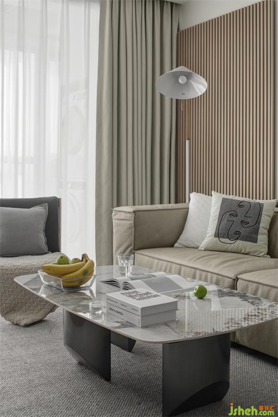 12mm的巖板茶幾,紋理自然清晰,凸顯了石材的肌理感;順滑的圓角處理,南京家居設計提升了家居的安全指數(shù),給客廳增添了一抹亮色。