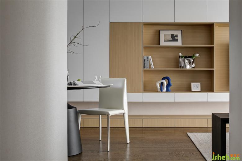 電視背景墻采用隱藏式柜體+展示柜+電視的組合設計,整面墻看起來更“整齊劃一”,封閉式的柜子內可以存放一些比較散亂的東西,而開放格+底部鏤空位置就可以擺放裝飾品、書籍等,南京家居設計提升空間的藝術品味,適當?shù)拈_放式展示架又能增添層次感和輕盈感,給人一種靈活多變的空間效果。木色更好的融入白色之中,中和了空間帶來的疏離感,南京家居設計讓客廳多了一份溫潤柔和,有了家的包容性。