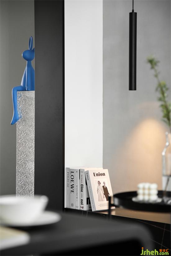 一盞長筒吊線燈,利落、簡潔的線條,純凈的黑色,細膩的質(zhì)感,南京裝修設(shè)計增添了空間的層次感,也在不經(jīng)意間隱約透現(xiàn)出美感與力度。