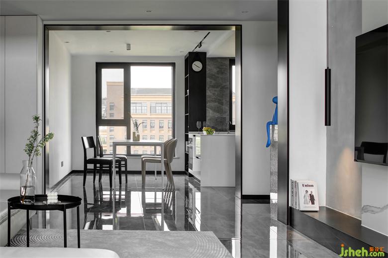 客廳與過道之間的埡口寬敞而舒適,使得客餐廳之間通透而開闊,南京裝修設(shè)計(jì)搭配黑色的啞口套,與黑色腳線相銜接,黑色元素做貫穿,簡(jiǎn)單而有質(zhì)感。