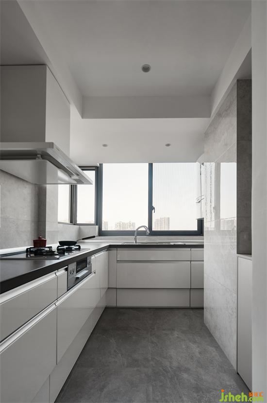 廚房以暖白和灰色為主色調(diào),凹凸有致的櫥柜營造出了豐富的層次感和質(zhì)地感,讓空間更顯溫馨舒適。
