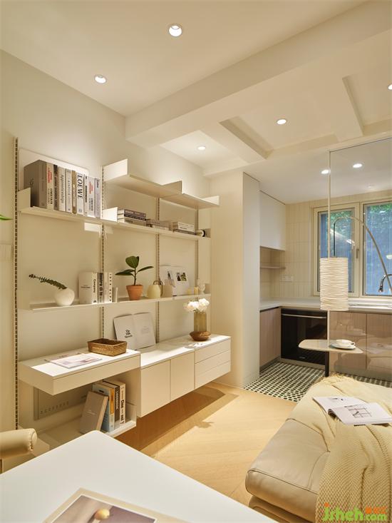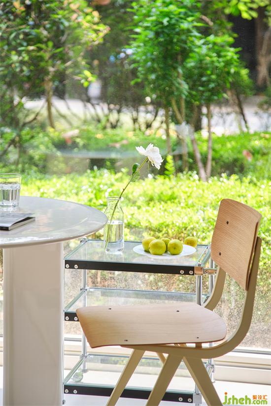客廳與廚房之間通過玻璃隔斷分隔,實(shí)用與美觀兼具,光線從玻璃中肆意穿梭,南京銀城聚錦園家裝設(shè)計(jì)改善空間采光,開放式廚房的設(shè)計(jì)又讓空間更顯大,帶來隔而不斷的通透感。