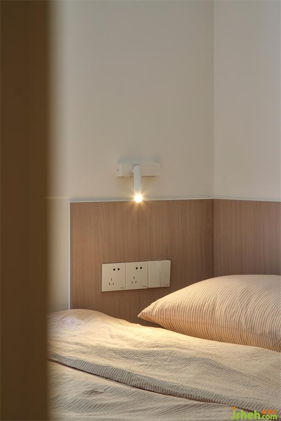 床頭背景墻用木飾面作為裝飾,自然舒適的木質(zhì),南京銀城聚錦園家裝設(shè)計(jì)也能讓空間顯得更加溫馨舒暢,搭配無靠背床,讓睡眠氛圍更加輕松愜意。