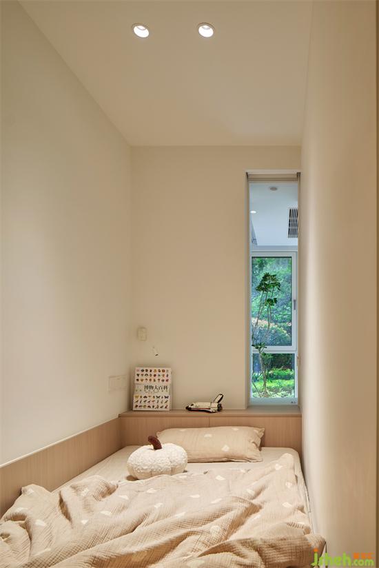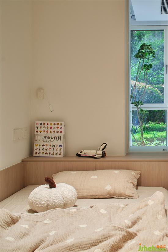 通過木飾面的圍合,讓空間顯得質(zhì)感更加自然大方,床頭預(yù)留置物空間,小朋友看的書籍和玩具可以隨手放置,結(jié)合簡約的小壁燈,臥室氛圍更有格調(diào)。