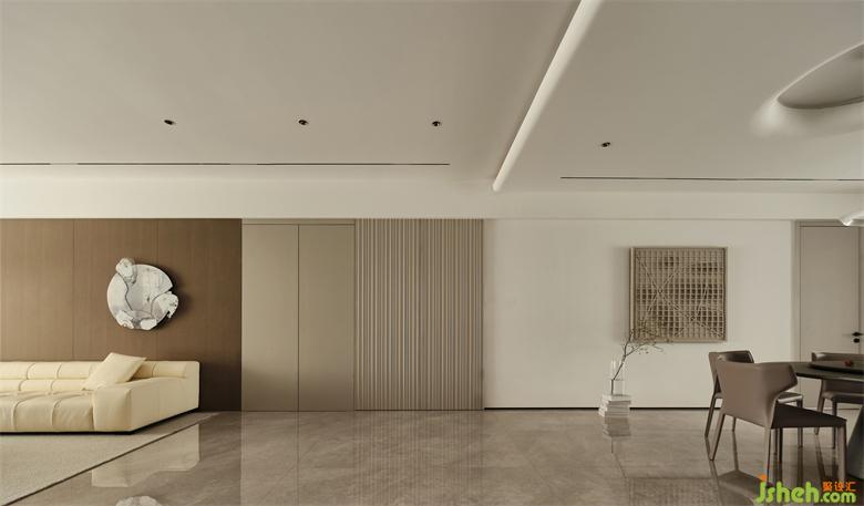 南京藏龍御景家裝設(shè)計開放的空間布局,簡約克制的美學(xué),顯現(xiàn)空間的寧靜與包容性。