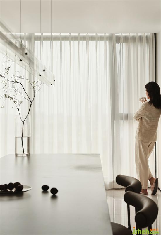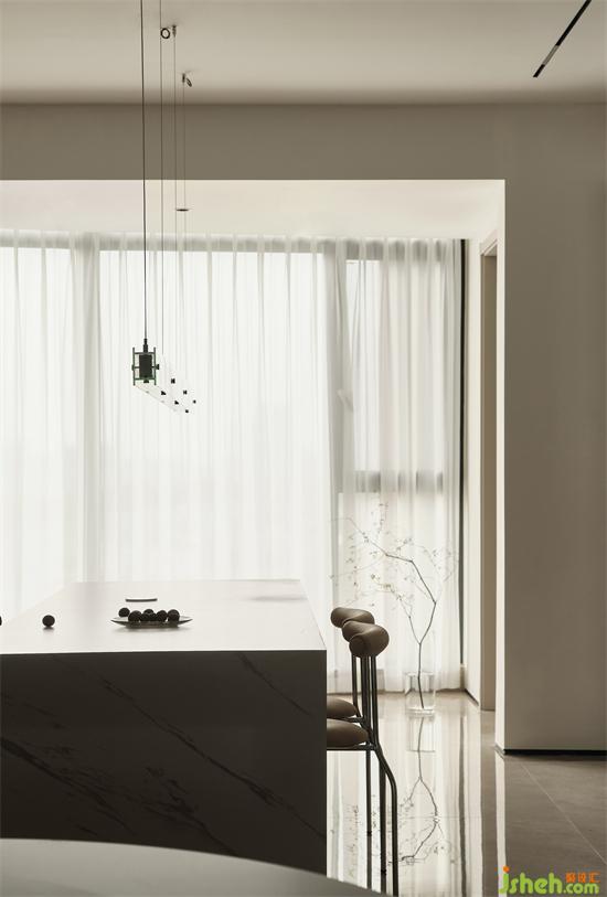 西廚區(qū)和北陽臺相連通,與南陽臺相呼應(yīng),在自然光線的透射下,家裝設(shè)計既能坐擁戶外的無限風光,又能帶來充足的光線,讓家充滿閑適的氣息。
