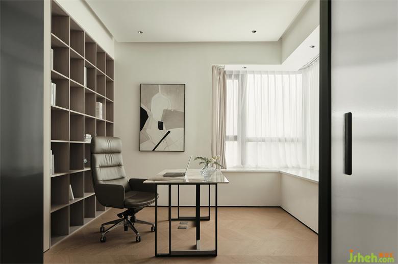 從主臥可進(jìn)入書房,獨(dú)立的空間安靜不受干擾,L型的飄窗賦予室內(nèi)更多采光。