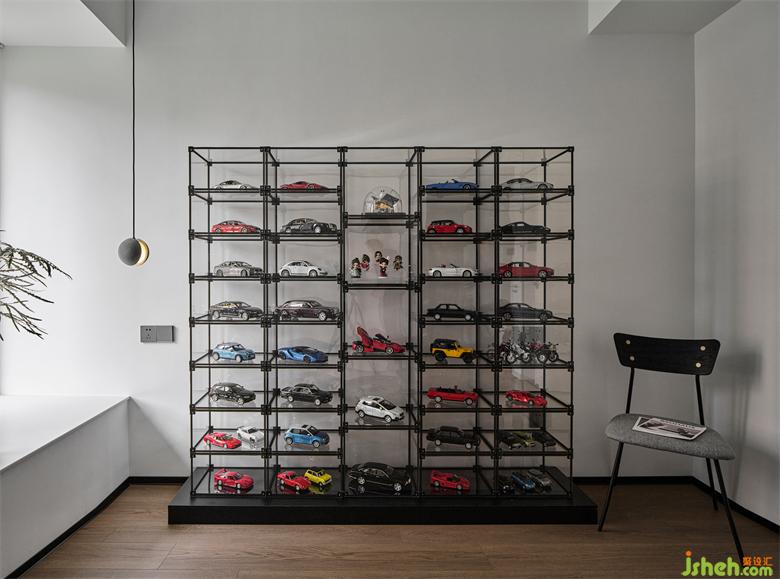 二層朝北的次臥作為活動(dòng)室,男屋主喜愛(ài)收藏車(chē)模,購(gòu)置開(kāi)放式展示架,將各種模型收納于此。