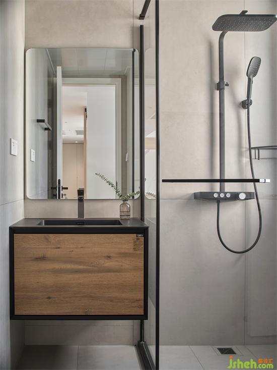 衛(wèi)生間在黑色+灰色的基礎(chǔ)上點(diǎn)綴一抹木色,線條簡(jiǎn)潔利落,空間干凈時(shí)尚,南京瓏玥名邸精裝房改造滿足基本需求功能之外,沒(méi)有過(guò)多的裝飾,回歸真實(shí)、簡(jiǎn)單的生活狀態(tài)。