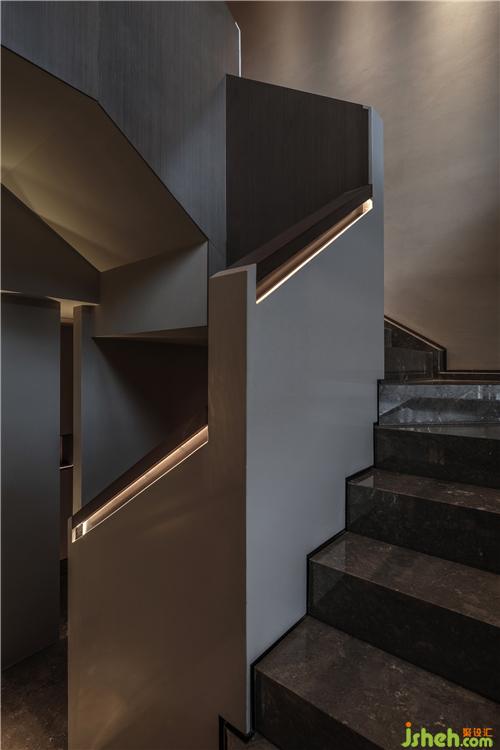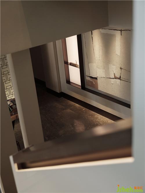 扶梯在一個(gè)約10㎡的空間中以緊湊的折線完成了一個(gè)“回”字攀升,于是,在旋轉(zhuǎn)而上的過(guò)程中,“打開(kāi)、收緊、打開(kāi)”的空間節(jié)奏能夠被明確捕捉,繁瑣裝飾被摒棄,空間回歸質(zhì)樸。