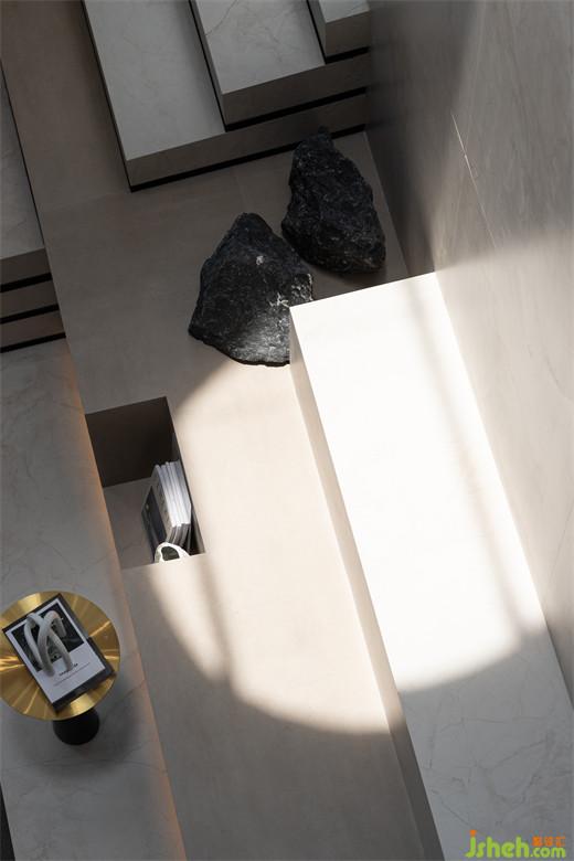 光線在空間內(nèi)游走、盤回、起伏,以純粹直接的感官體驗,加深了人對色彩、形狀、重量的捕捉和定義。片山有致,寸石生情,自然成景。瓷磚本身,就是微縮的景致,在咫尺之間,打開了空間,擬態(tài)出自然勝境。