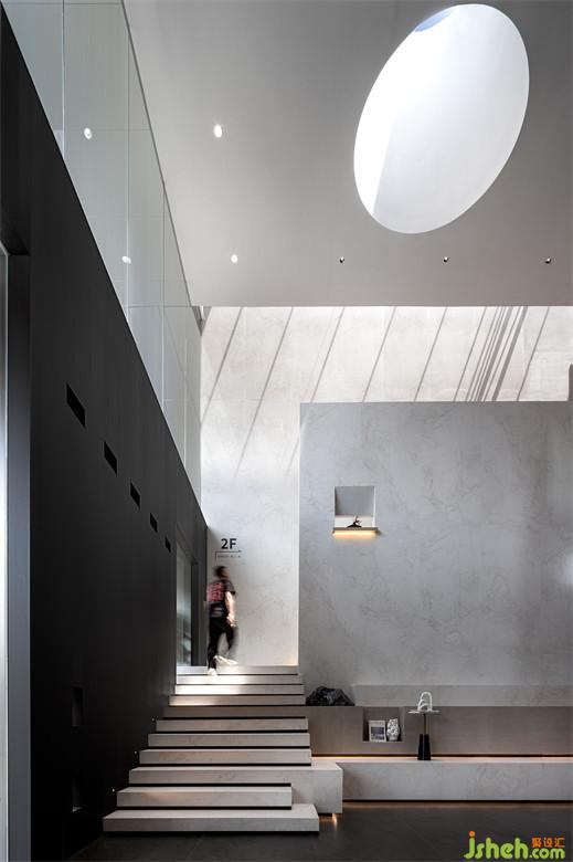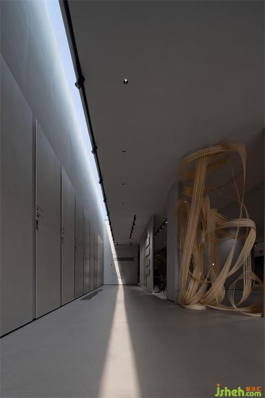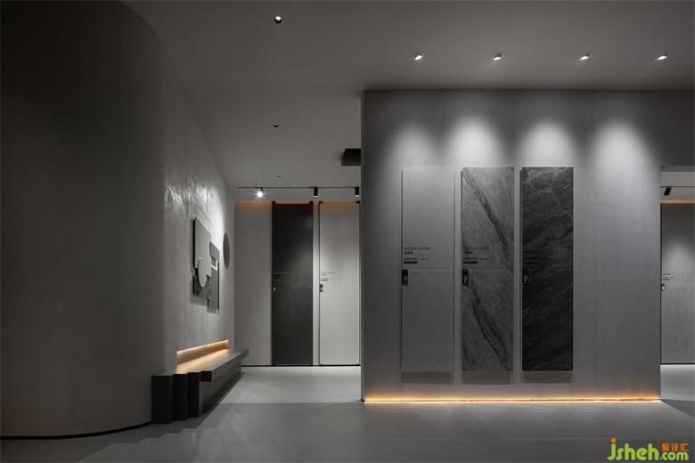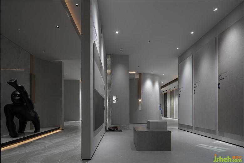 二層空間延續(xù)其他場(chǎng)域的布展形式,瓷磚展廳設(shè)計(jì)讓多元化產(chǎn)品以成系列的方式展示,空間的界限被打破,便于進(jìn)一步探索內(nèi)與外、人與物的關(guān)系。置入藝術(shù)裝置,為藝術(shù)和自然精神的相互滲透提供了切入點(diǎn)。