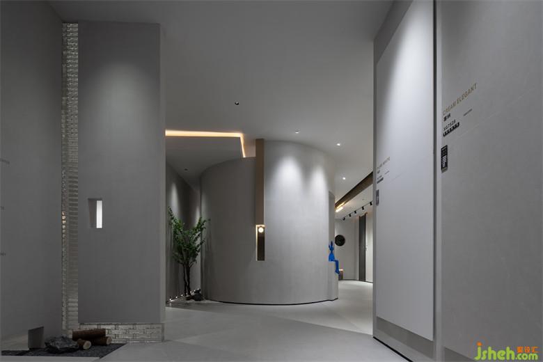 安東尼奧·高迪說(shuō)過(guò):“直線屬于人類,曲線則屬于上帝?!毖刂^(guò)道展陳優(yōu)質(zhì)的產(chǎn)品,瓷磚展廳設(shè)計(jì)通過(guò)過(guò)道盡頭的曲面裝置進(jìn)行導(dǎo)流,營(yíng)造出逛藝術(shù)畫(huà)廊一般的體驗(yàn)。設(shè)計(jì),在開(kāi)放與回歸、自然與封閉的概念和體驗(yàn)中游弋,給來(lái)者留下了深刻的印象。