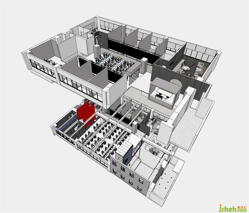空間基調(diào)的預(yù)設(shè),是一種主導(dǎo)體驗的感性語言。深圳辦公室設(shè)計以當下流行的黑白灰定義空間視覺主基調(diào),將整個空間自上而下打造成高級簡約的通透之境;再巧妙融入設(shè)計的個性思考,中性調(diào)中大膽加以一抹濃郁紅帶來色彩沖擊,激發(fā)工作的活力和激情,引導(dǎo)工作者盡情表達自我,發(fā)揮創(chuàng)造力,恰是匹配了深圳現(xiàn)代化、開放、充滿活力的城市性格。