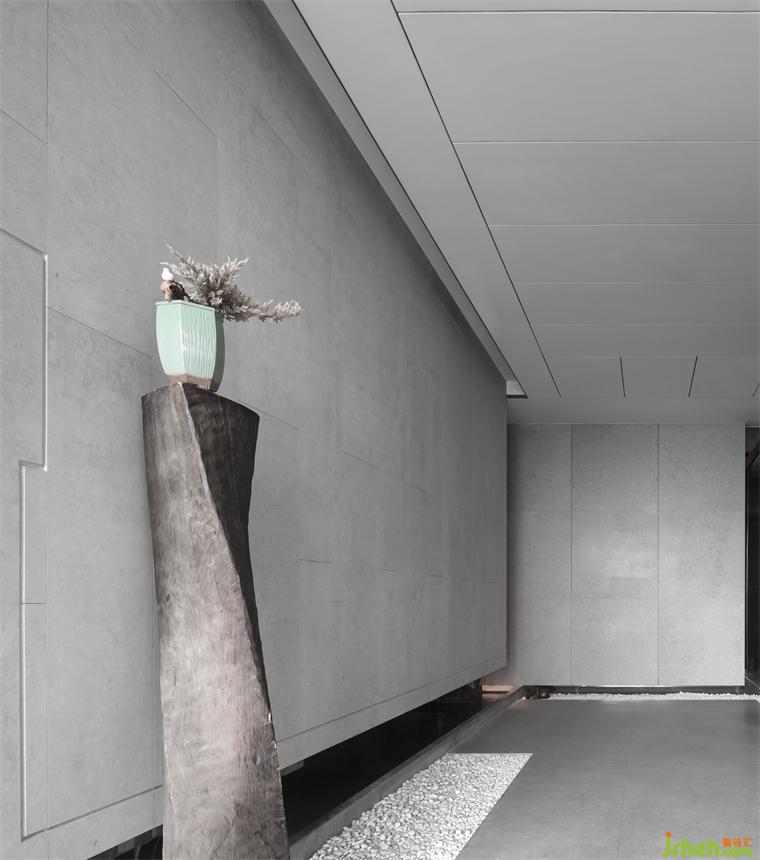 一面是熙熙攘攘的繁華都市,另一面是小橋流水。懷有“心有猛虎,細(xì)嗅薔薇”精神追求,是我們作為設(shè)計(jì)師必備的工匠態(tài)度?!八五e?,山島竦峙”的寓意,盆栽與枯木藝術(shù)、辦公室設(shè)計(jì)潺潺的水流聲襯托出都市中的原生態(tài)美,也就是我們所謂的相對(duì)極簡(jiǎn)主義、禪宗意境的體現(xiàn)。