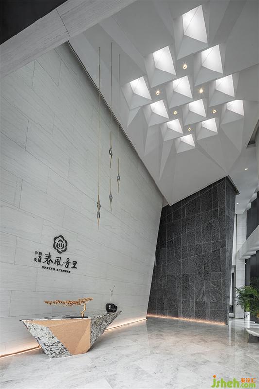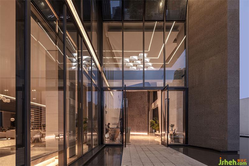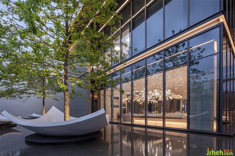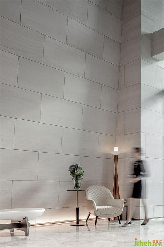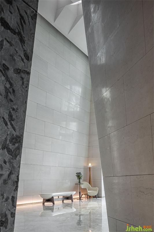 空間不是展示建構(gòu)的場所,而是擁有減少讓注意力分散的誘惑,當入口的視覺聚焦被藝術(shù)的主題思想而鏈接,由外而內(nèi),光柱絲線切割形成的幾何幕墻,展現(xiàn)著理想生活城的理念,一半是功能,而另一半則是,藝術(shù)。